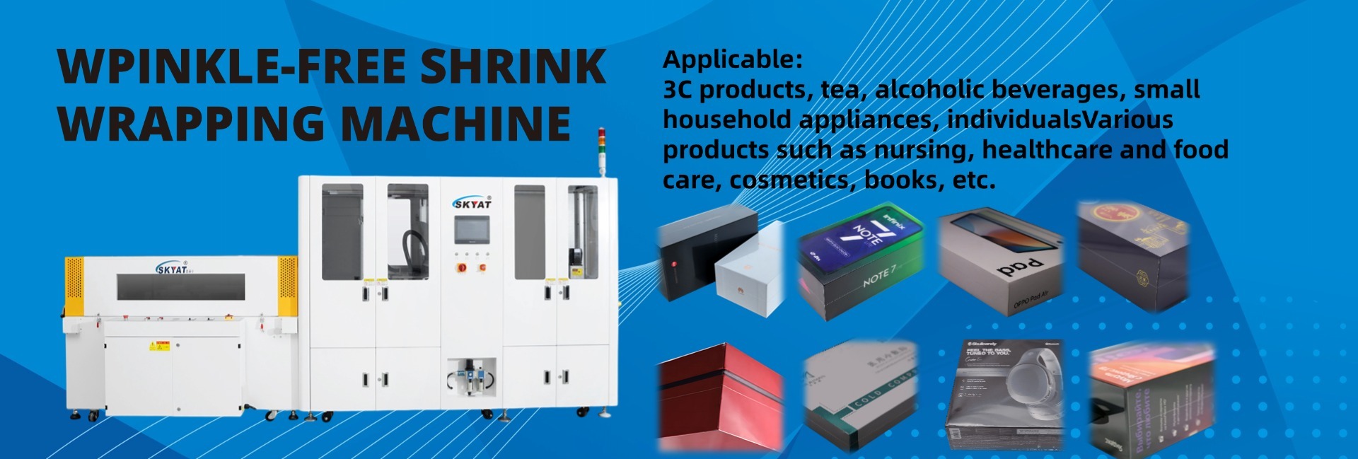 Global leader in anti-wrinkle shrink packaging systems. We engineer patented machines with anti-wrinkle cutting for seamless 99.3% fold-free seals. Serving electronics, pharma & luxury goods